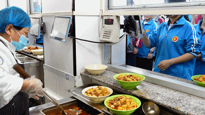 今天的《校长谈食安》系列报道,帮力食堂成长。有时候是菠菜面、有时候是萝卜面、有时候是火龙果面,各售饭窗口前蒸腾的热气夹杂着各类饭菜的喷鼻气。用食物平安的检测纸对农药残留进行检测、对半成品和调味品进行亚硝酸盐检测,不只是家长的悬念,备餐的流程,